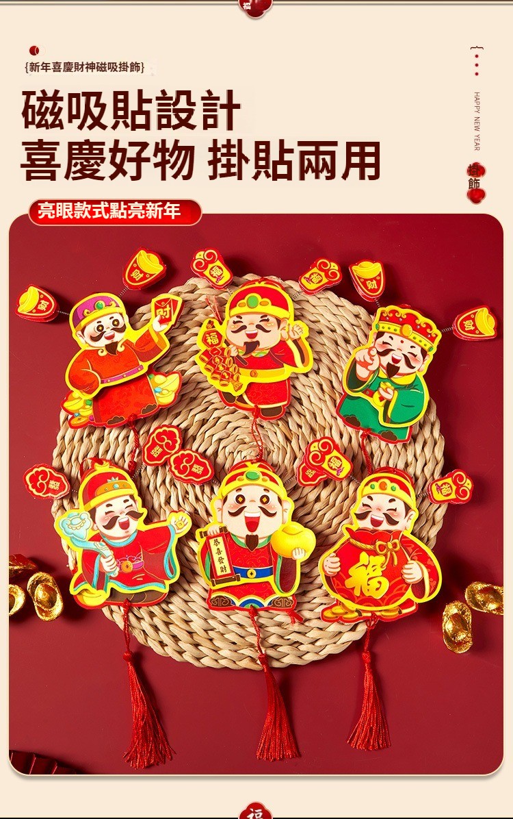 2025蛇年財神爺喜慶磁鐵冰箱貼,磁吸新年掛件春節新年財神爺小掛件