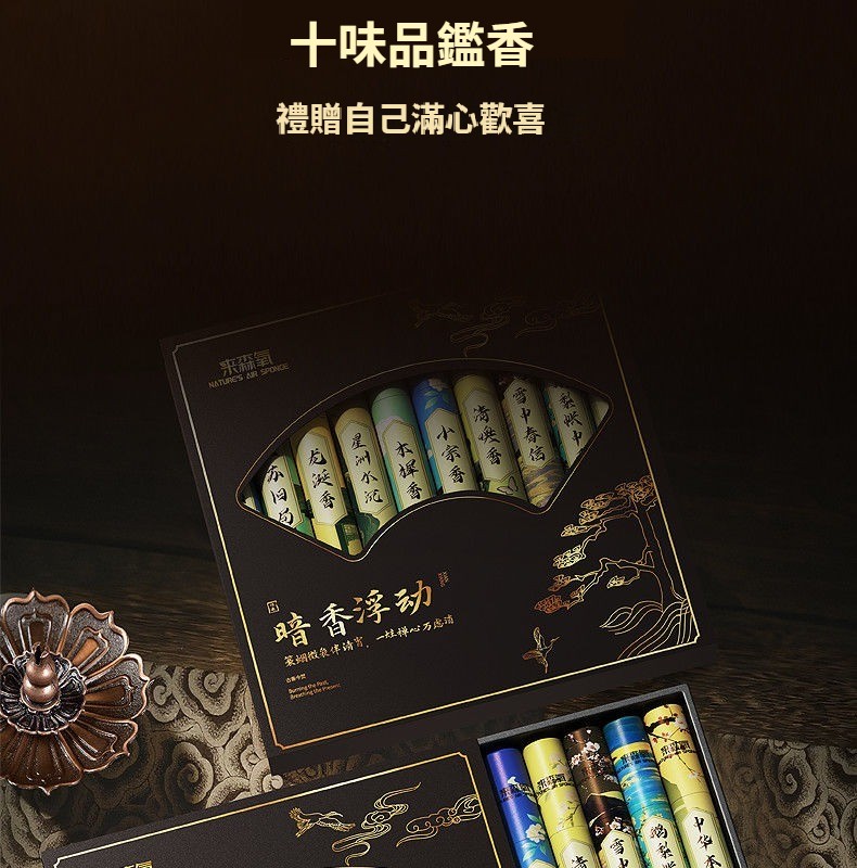 香道10味線香.高級禮盒裝.家用香薰持久除臭去味.清香不刺鼻 採用原木香料和粘粉精心配比製作延長線香的燃燒時長降低煙霧 NT$ 999