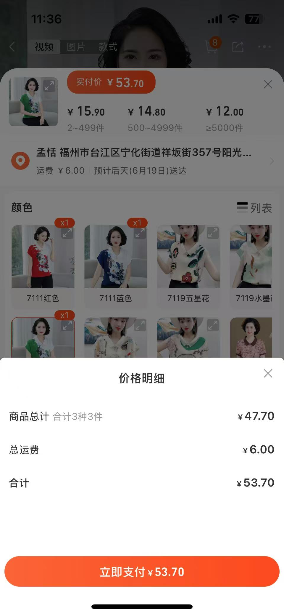 ①女士百搭雪纺衫(7111红+蓝+绿)都是L碼,3件53.7元https://qr.1688.com/s/6N2NqeiJ CZ9868①女士百搭雪纺衫(7111红+蓝+绿)都是L碼,3件53.7元https://qr.1688.com/s/6N2NqeiJ CZ9868